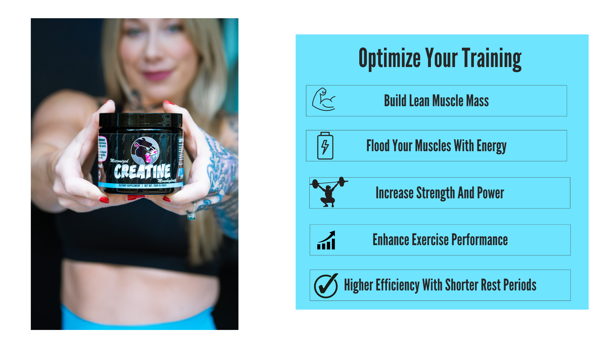 Since creatine supplementation increases your phosphocreatine stores, it allows you to produce more ATP energy to fuel your muscles. This extra fuel can contribute to an increased capacity to perform high-intensity exercise allowing you to push harder and heavier for longer in the gym. Properly utilizing this increased ability will make strength and muscle gains essentially inevitable.